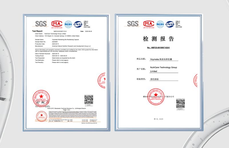 根據國際公認的檢驗、鑒定、測試和認證機構SGS出具的檢測報告,VOYMEKA煥新蘊活膠囊在多項核心安全指標上均遠超行業標準。在消費者最為擔憂的重金屬殘留問題上,檢測結果顯示: