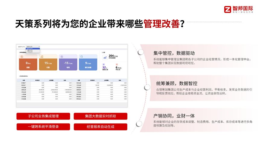 智能數據分析為決策提供精準支撐。集團企業的決策涉及海量數據,人工分析不僅效率低下,還難以挖掘數據背后的潛在規律。智邦國際一體化ERP內置了智能數據分析模塊,通過大數據算法對全集團的業務數據進行實時分析與多維挖掘。管理層可通過可視化駕駛艙,直觀查看集團的整體運營狀況,包括各子公司的銷售排名、各產品線的利潤貢獻、各區域市場的增長趨勢等。