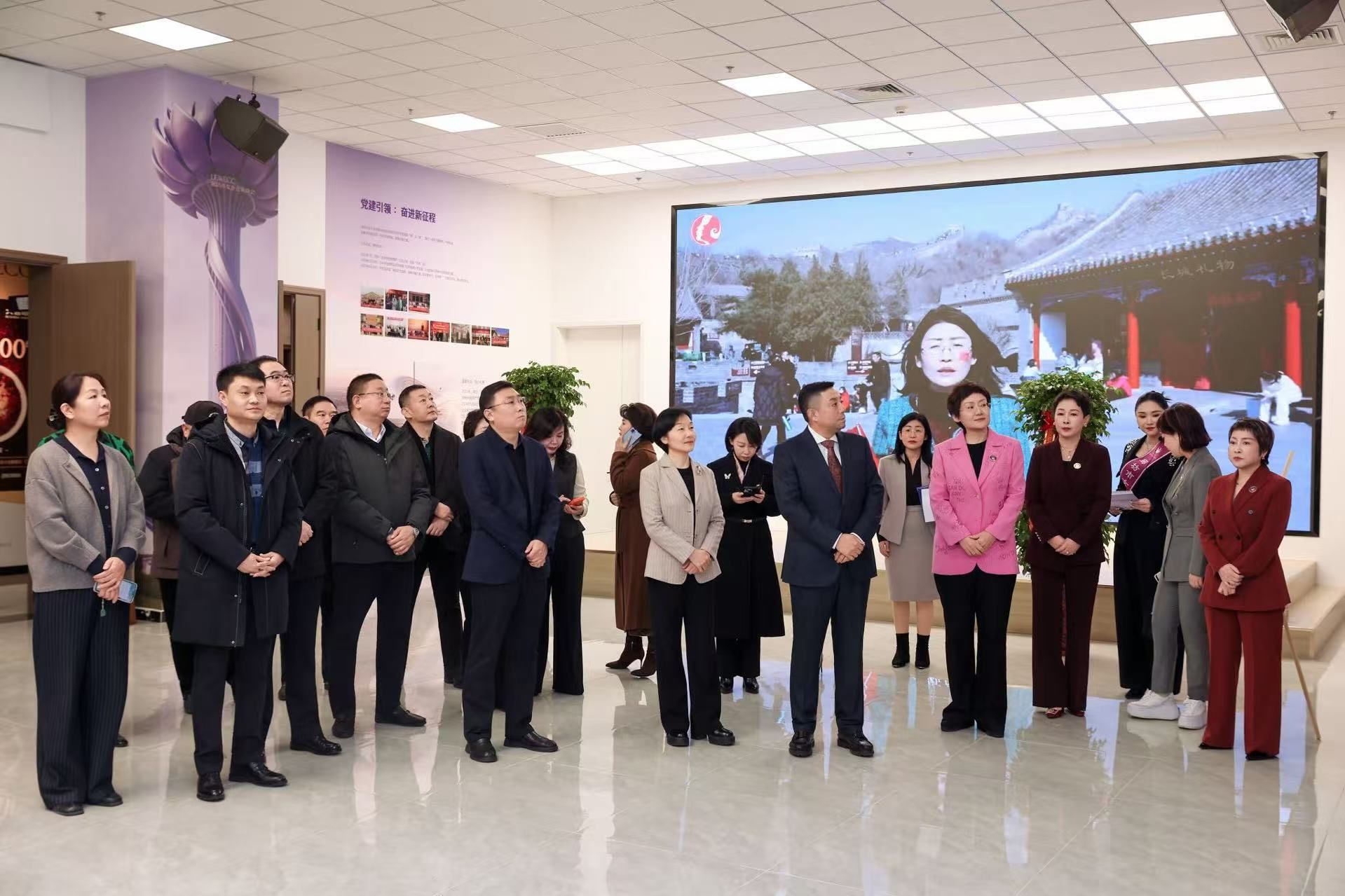活動以參觀文化展廳拉開序幕。在商會會長李怡萱的陪同下,孟憲明主席一行系統了解了商會自2007年成立以來的發展歷程,并重點參觀了展現“五化雙循環”戰略體系和2026年戰略規劃的展區。李怡萱會長表示,展覽全面呈現了女企業家群體從個體創業到平臺化發展的演進歷程,是“她力量”在新時代中擔當有為的生動見證。