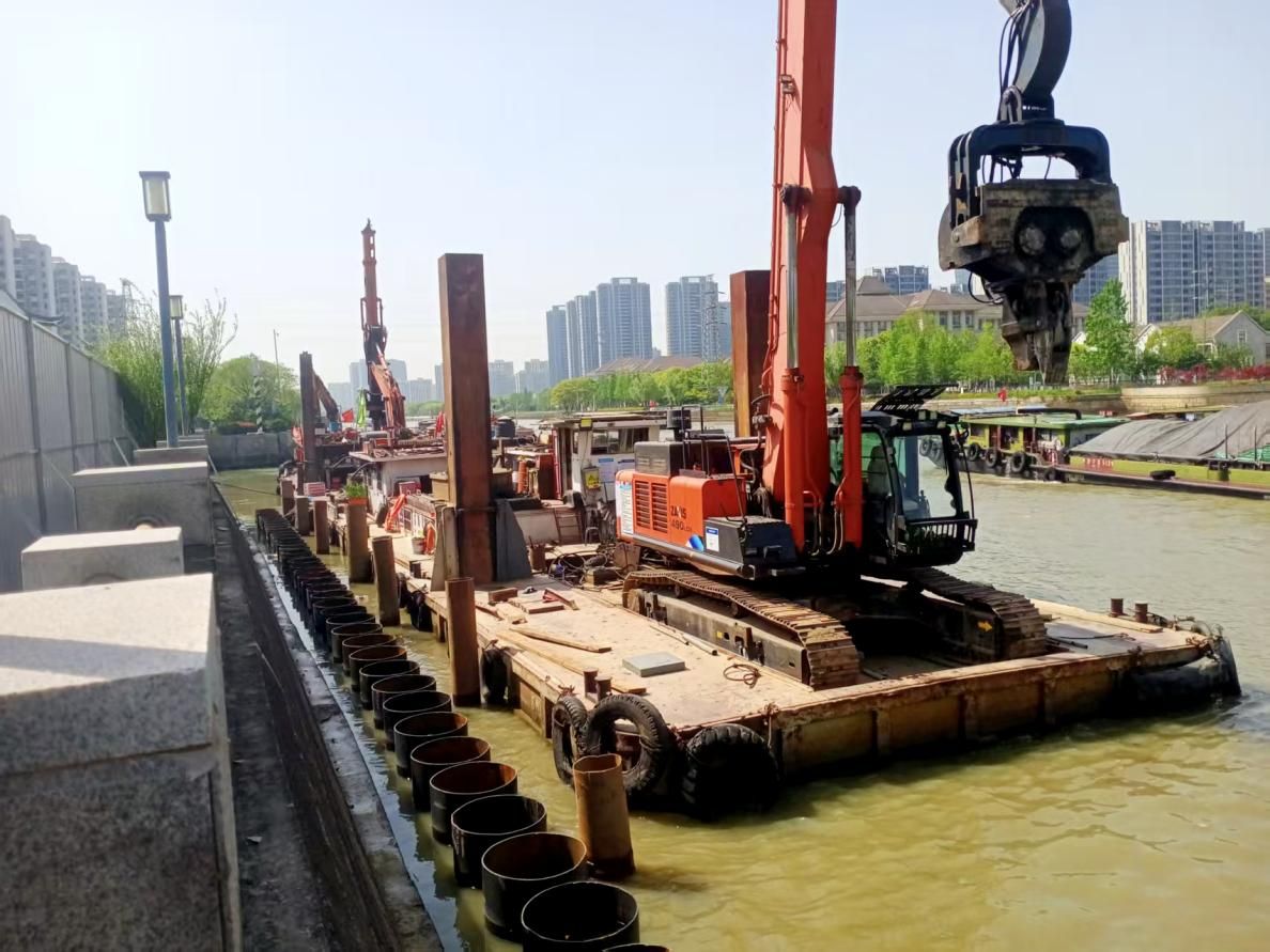 由于工程地處蘇州古城核心區域,緊鄰寒山寺景區,周邊歷史底蘊深厚、人文景觀密集,生態環境敏感。項目團隊秉持“最小干預、最大保護”的綠色施工理念,守護古城生態“顏值”。工程建設區域涵蓋國家級生態管控區——楓橋景區,團隊結合景區環境特點量身定制專項綠色施工方案。嚴格落實施工揚塵防治“6個100%”要求,通過每日巡河與無人機常態化管控,構建全天候環境監測網絡。優化施工時序與工藝,嚴格控制作業時間,最大限度降低噪聲、振動對周邊景區及居民區的影響。推行建筑垃圾分類回收與資源化利用,與地方政府協同推進土方就地調配,減少渣土外運,實現資源節約與環境保護的雙贏。此外,項目通過護岸生態化改造、沿岸綠化補植等舉措,讓升級后的航道與古城風貌、自然景觀無縫相融,盡顯“清水綠岸、城水相依”的生態畫卷。