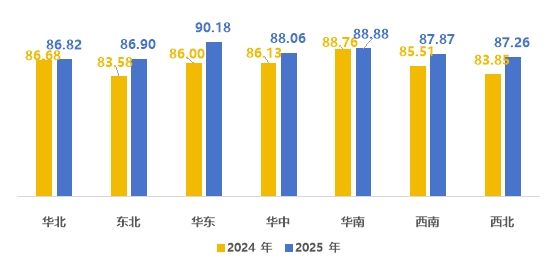 附圖2024-2025年各地區得分對比(分)
