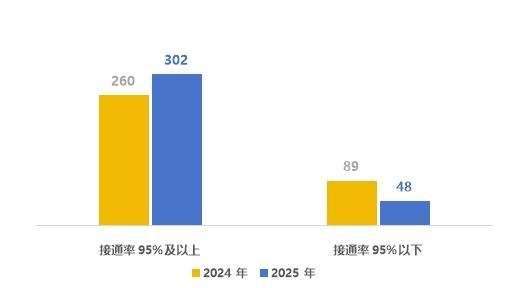 圖 2024-2025不同平均接通率城市數量分布情況