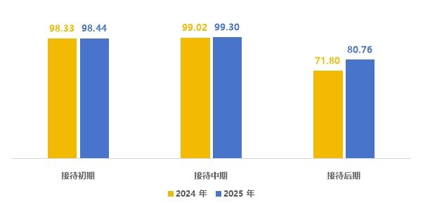 2025年接待禮儀得分92.83分,同比增長3.47%。接待禮儀后期指標得分漲幅較大,其中,“再次詢問需求”指標得分同比增長36.26%,較多城市優化了通話后期的話術,提高了通話體驗。