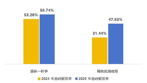 附圖 2024-2025年退休一件事和稅收優惠政策場景首呼解答率對比