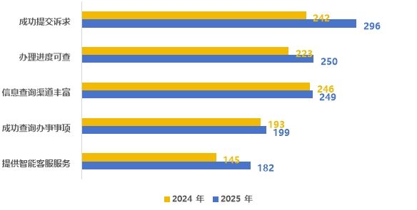 從線上受理渠道響應性來看,系統穩定性仍有待提升。值得關注的是,2025年測評發現42個城市出現鏈接無法打開等問題,較2024年增長2個。