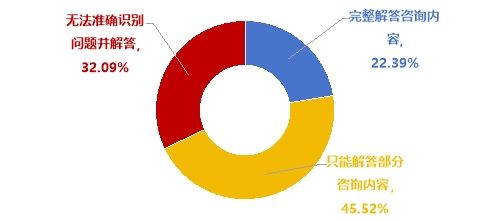 從線上端智能客服回答準確性來看,僅22.39%的城市智能客服可完整解答咨詢內容,45.52%只能解答部分咨詢內容,32.09%無法準確識別問題并做出相應回答。
