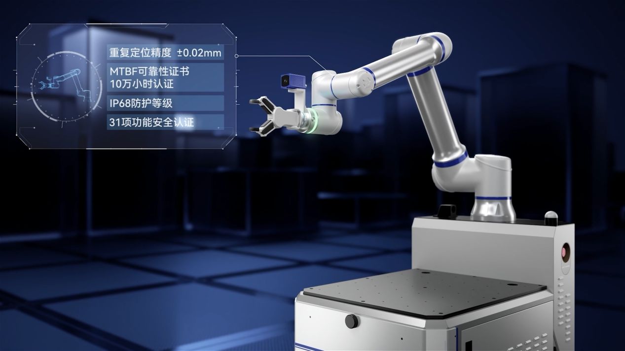 高可靠執行單元(手):協作機器人產品覆蓋3~30KG寬負載范圍,具備業內首個MTBF 10萬小時測試認證,同時滿足31項功能安全要求,全面保障人機協作場景的安全與穩定。