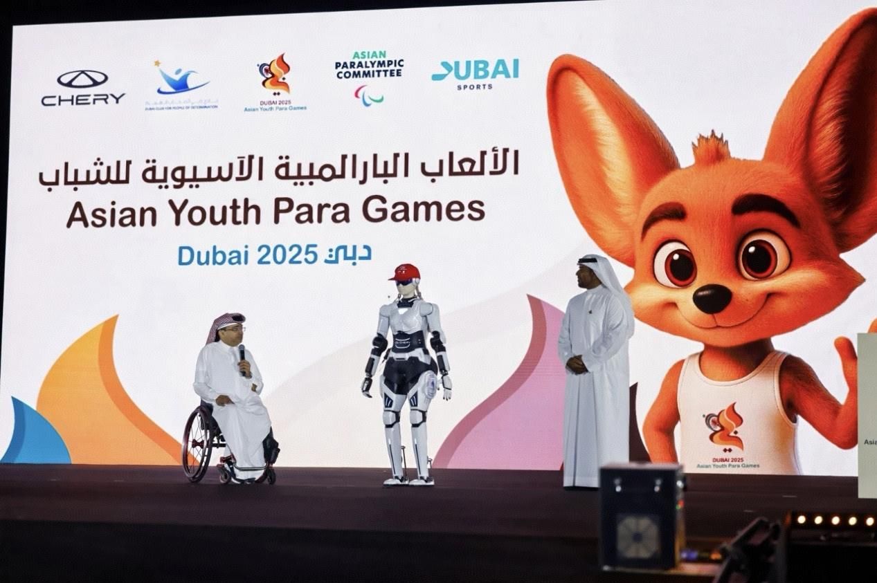 圖為奇瑞墨甲機器人為2025亞洲青年殘疾人運動會提供服務