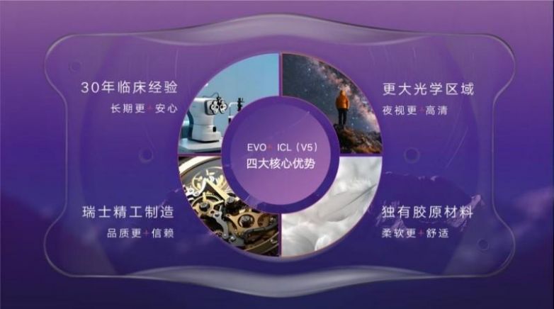 此次植入的EVO+ ICL(V5)晶體,代表了近視矯正技術一次“精密的進化”。其技術革新源于對光學物理與人眼生理的深刻融合,四大核心優勢共同奠定了新一代視覺矯正方案的技術基石:
