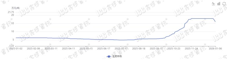 經過長期的沉寂,六氟磷酸鋰價格終于在2025年7月份迎來轉機。7月份六氟價格在成本帶動下小幅上漲,經過一個多月的試探,八九月份市場需求增幅較大,六氟市場供需缺口持續增加,于是乎六氟價格一發不可控制的上漲,從最低價4.7萬元/噸,漲至18萬元/噸,漲幅高達283%。