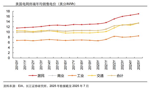 這體現在電價持續飆升上,如 2025 年美國平均銷售電價持續上漲,而電網可靠性卻在下降,美國電力用戶平均停電時長(計入重大災害后)甚至創下近年來新高。
