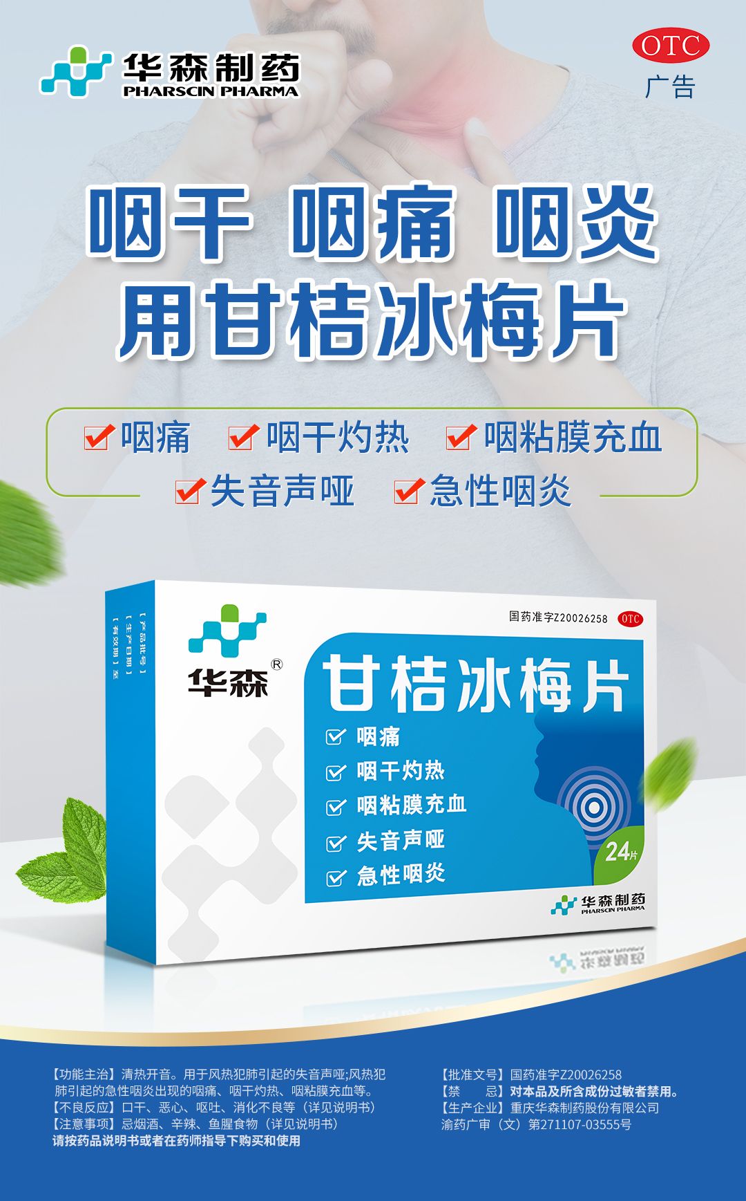 甘桔冰梅片單藥即可有效緩解咽炎引起的咽干咽痛和喉炎引起的聲音嘶啞等癥狀,降低了中成藥聯合用藥帶來的不良反應風險和經濟負擔,彌補了抗生素、激素類藥品存在較大副作用、臨床復發率高及耐藥性等缺陷,是臨床治療咽炎、喉炎的首選用藥。米內網數據顯示其市場占有率位列全國醫院終端咽喉中成藥第1名。