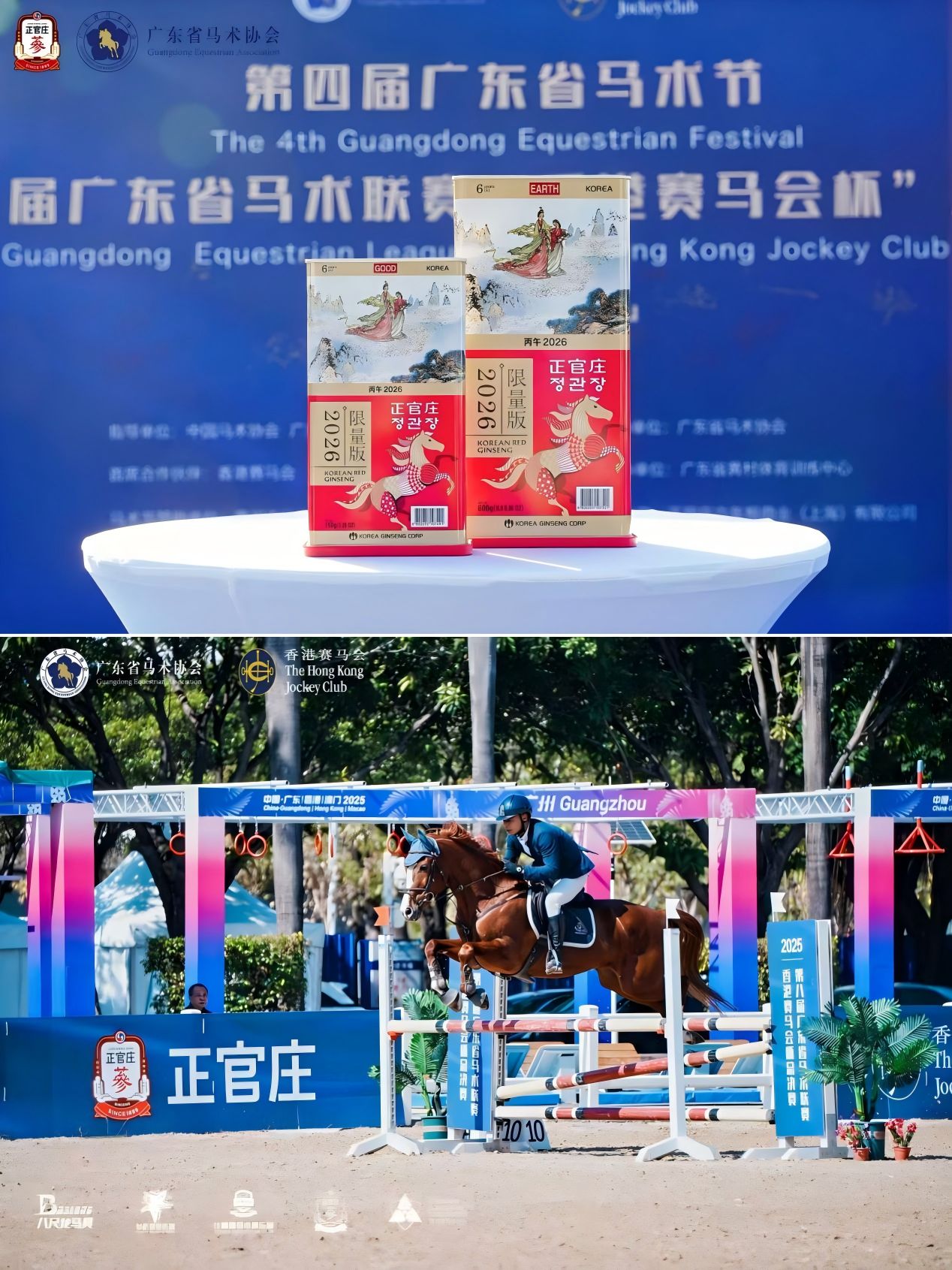 1月10日至11日,第四屆廣東省馬術節·第八屆廣東省馬術聯賽“香港賽馬會杯”總決賽于廣州隆重舉行。本屆賽事匯聚了來自珠三角地區19支俱樂部的370余對人馬組合,在兩天的賽程中同臺競技,呈現了一場兼具專業高度與藝術觀賞性的馬術盛宴。全球銷售額第一人參品牌*正官莊作為賽事合作伙伴,共同見證了賽事盛況。