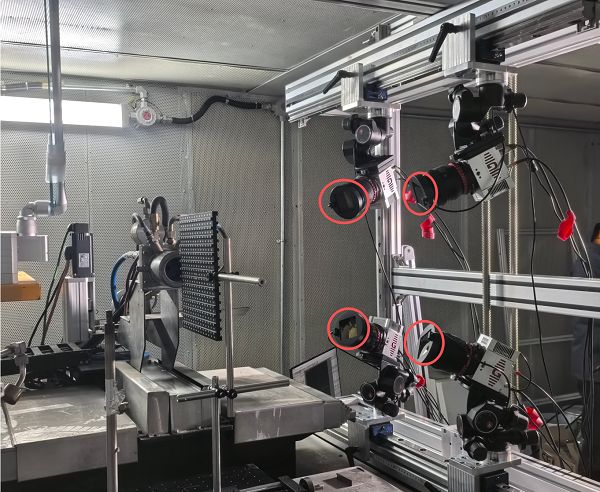 隨后完成四臺千眼狼PIV跨幀相機的空間布置(圖4),采用多視角跨幀成像方案,使各相機視場在測量體積內形成充分重疊,從幾何布局層面保證體速度反演所需的視差信息,同時兼顧空間分辨率與成像穩定性。
