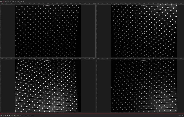 完成光學系統與照明對準后,采集多組體標定板圖像(圖7),并采用基于映射關系的多項式擬合方法進行初始幾何標定,建立相機像素坐標與物理空間坐標之間的映射關系;