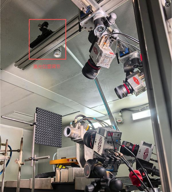 實驗首先對燃燒噴口近場測量區域進行光學定位(圖3),通過機械基準與激光指示對測量體積中心位置進行精確標定,明確三維測量區域在噴口軸向與徑向的空間范圍,為后續多相機布置與體測量坐標系統提供參考基準。