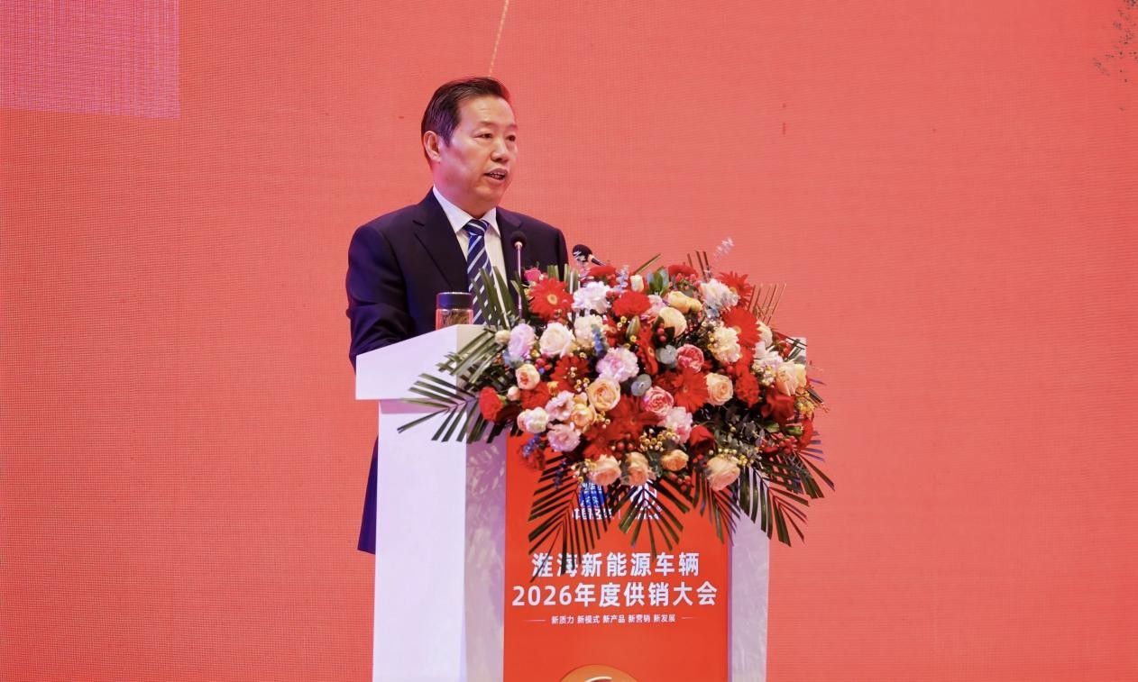1月16日,淮海新能源車輛2026年度供銷大會在江蘇省徐州市鉑瑞酒店召開。大會以“新質力、新模式、新產品、新營銷、新發展”為主題,深度聚焦淮海“221”新質產業發展規劃,錨定產業升級方向,致力提升“淮海車輛?中國名牌”品牌全球影響力。