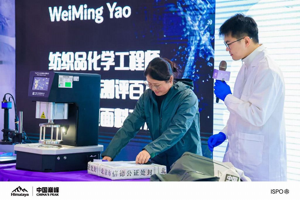 2025年4月中旬,高海拔專業級防水面料品牌 pk-tex?巔峰,聯合國產戶外運動品牌駱駝(CAMEL)推出國內首款ePE膜無氟沖鋒衣。此次,pk-tex?巔峰再度攜手駱駝集團旗下高海拔專業戶外品牌喜馬拉雅(Himalaya),與中國無腿登珠峰第一人、世界無腿登頂珠峰最年長者——夏伯渝,共同打造高山無氟環保沖鋒衣——“喜馬拉雅H5500攀山殼”。在ISPO BEIJING 2026展會現場,雙方通過一場公開透明的面料實測,深度詮釋無氟環保科技。這不僅是產品性能的硬核碰撞,更是中國面料科技從“中國制造”向“中國標準”跨越的有力見證。