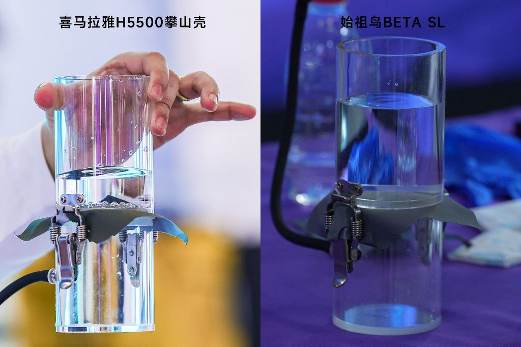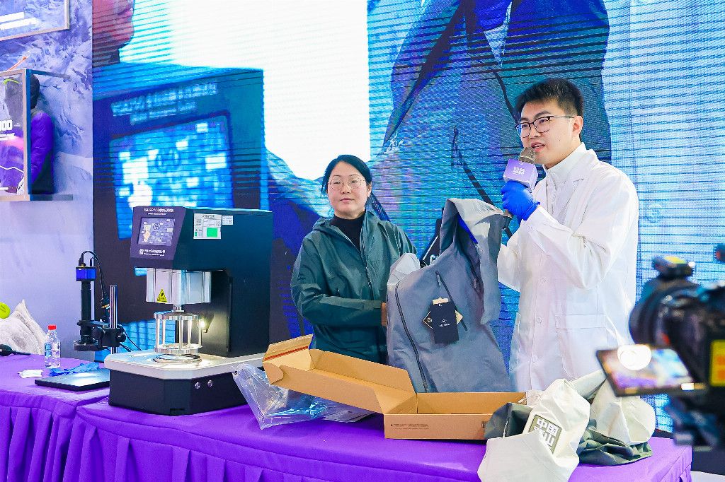 為了打破“進口面料即標桿”的固有認知,高海拔專業級防水面料品牌 pk-tex? 巔峰特邀紡織品化學工程師姚蔚銘、中國紡織科學研究院有限公司成果轉化中心副主任/中國紡織科學研究院江南分院成果轉化中心專家武術芳,在展會現場開啟了多項性能實測。實驗一方是搭載 GORE-TEX 科技的始祖鳥 BETA SL,另一方則是應用了 pk-tex? 巔峰面料的高山無氟環保沖鋒衣——喜馬拉雅H5500攀山殼。
