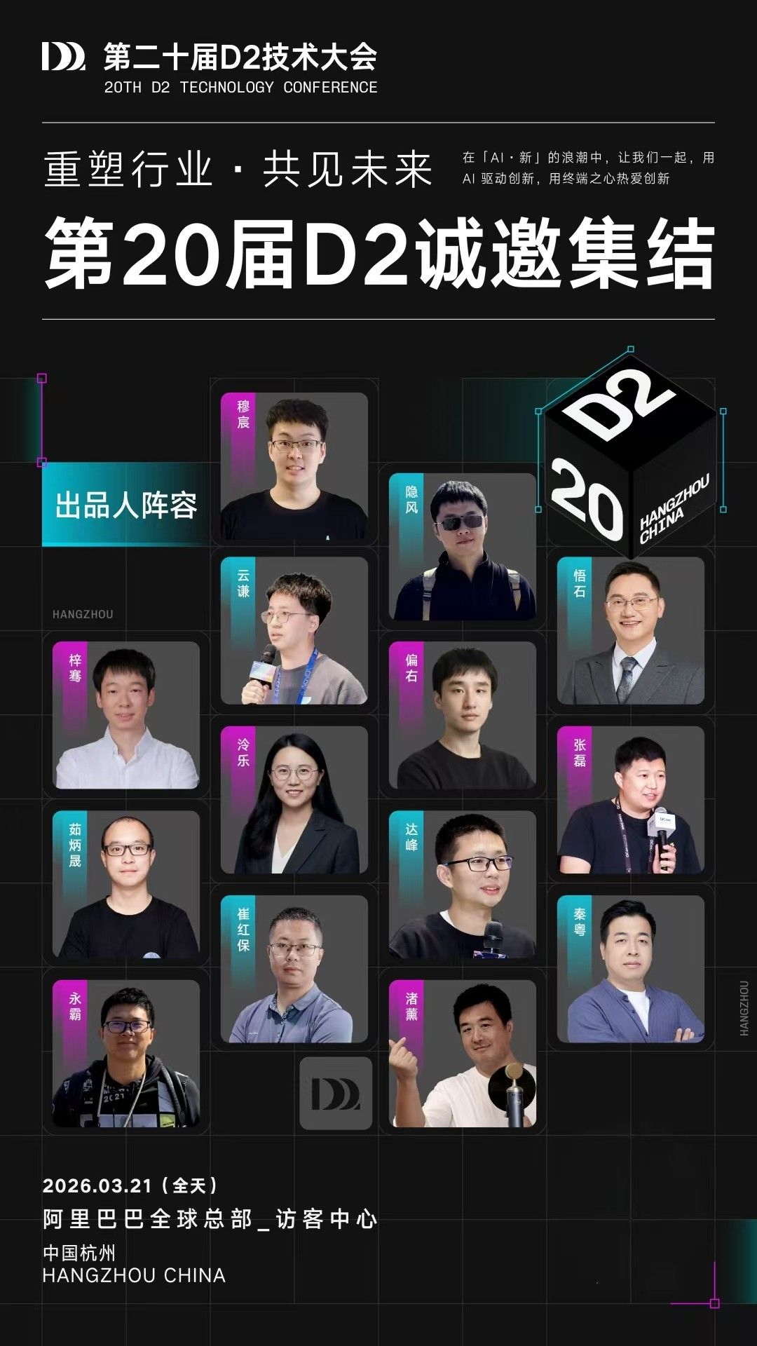 “在 D2,我們致力于將前沿的 AI 實踐提煉為系統化的技術范式。我們期待與你一同錨定 AI 時代的工程坐標,讓每一份實戰洞察都匯聚成定義未來的行業基準。”