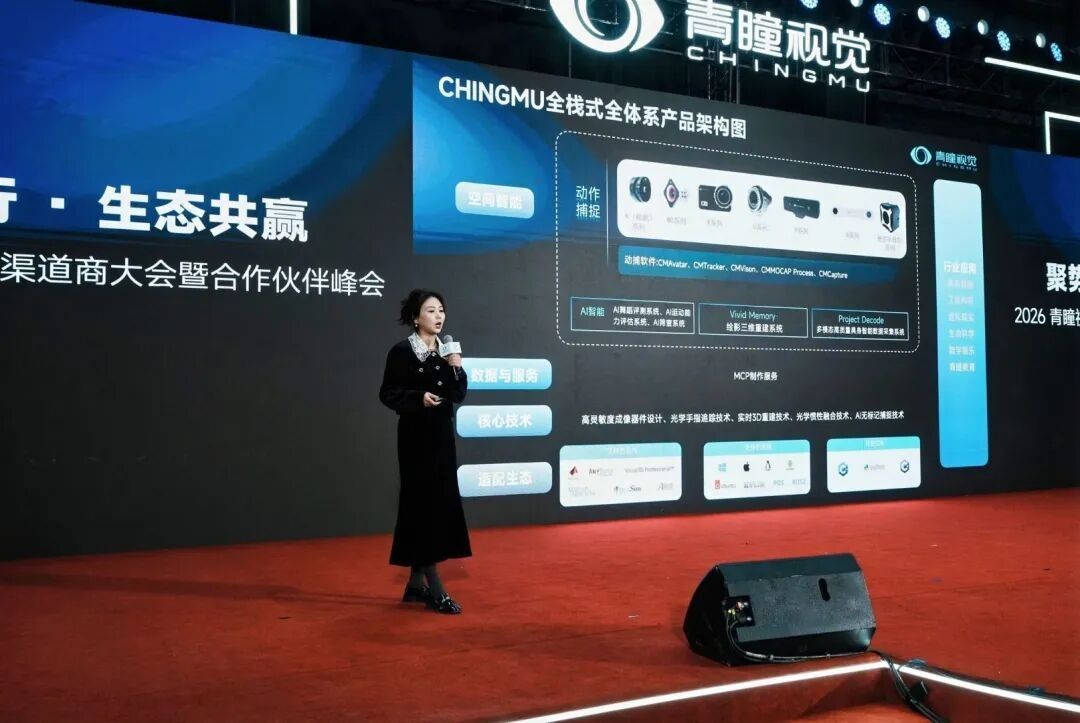 會議伊始,青瞳視覺CMO曾婷發表了《以視覺為核心,探索真實世界的智能邊界》的主題演講。她系統闡釋了視覺技術作為空間智能的核心,在驅動各產業數字化、智能化轉型中的關鍵作用,并指出青瞳視覺已從動作捕捉延伸至數據基建、3D資產與AI智能的全棧能力。通過展示數字娛樂、工程科研、具身智能、生命科學及教育等領域的標桿案例成果,生動呈現了技術應用的廣度與深度,為與會合作伙伴勾勒出清晰的協同發展路徑與前景。