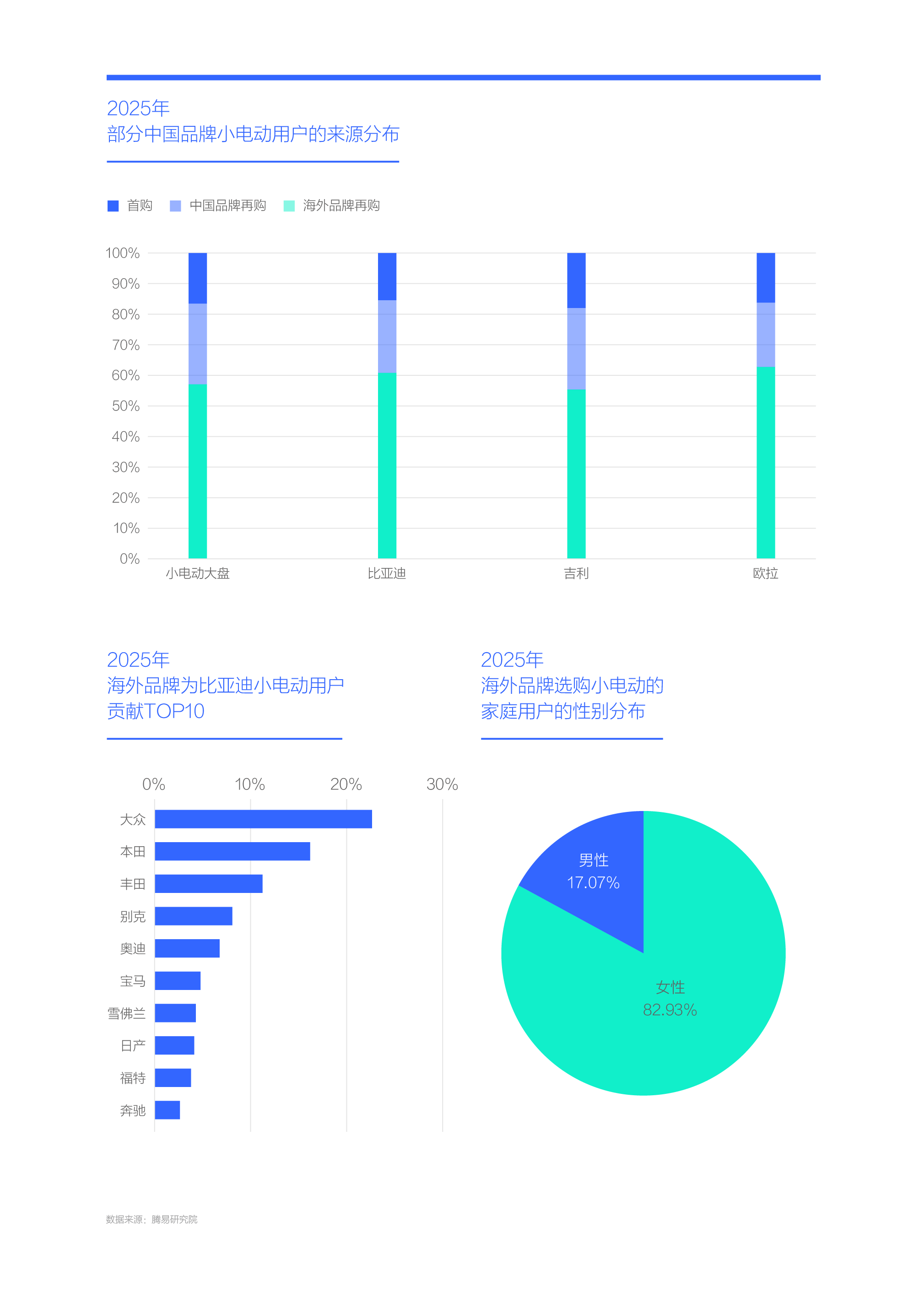 小電動的價值除了薄利多銷,還能吸引大量優質用戶,2025年小電動來自海外品牌家庭用戶的占比近六成,其中女性超八成
