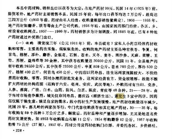 及至清宣統三年(1911年),霍山縣已有七家私營藥鋪涉足藥材購銷②,然多賴藥農采集、商販轉賣,地產藥材如茯苓、半夏、何首烏、桔梗、厚樸、麝香、金銀花、石斛等三十余種,發展滯緩。