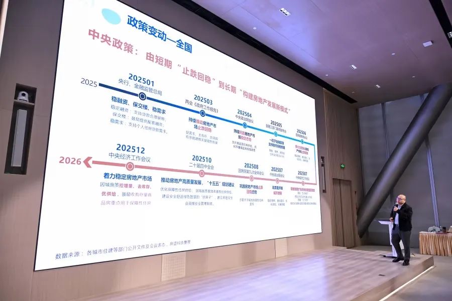 會上,中房研究院ICR執行院長、365房評·365大健康創始人肖勇發表開幕致辭,圍繞“2026捍衛資產”核心主題,剖析當前樓市現狀與未來趨勢。他指出,當前樓市處于底部徘徊、K型分化階段,剛需偏弱而改善型住宅表現較好,政策面釋放重磅積極信號,且股市向好有望聯動樓市回暖。肖勇建議,2026年應優化資產配置,聚焦核心城市、核心地段的核心資產,果斷處置非核心資產,并關注公寓等投資回報率較高的產品。同時,他強調行業減量背景下,轉型是必然選擇,開發商需向服務商、空間運營商轉型,開辟文旅、康養、科創等新賽道,依托科技賦能打造優質產品。