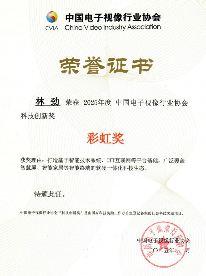 此次「彩虹獎」的授予,既是國家與行業對林勁先生十余載深耕細作、以創新驅動產業發展的高度肯定,也是對創維在音視頻產業智能化升級中龍頭引領地位的權威背書。當前,數字經濟與實體經濟深度融合,音視頻產業正迎來重要戰略機遇期,創維以技術創新為核心的發展路徑,彰顯了中國本土科技企業的硬實力與責任擔當。未來,創維將持續以集團董事會的創新理念為指引,深耕核心技術研發,賦能產業高質量升級,助力中國智造在全球音視頻領域綻放更耀眼的光芒。
