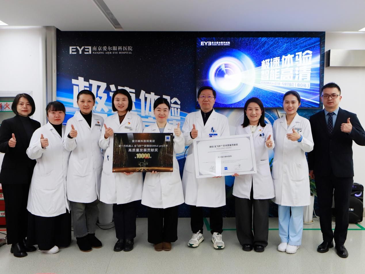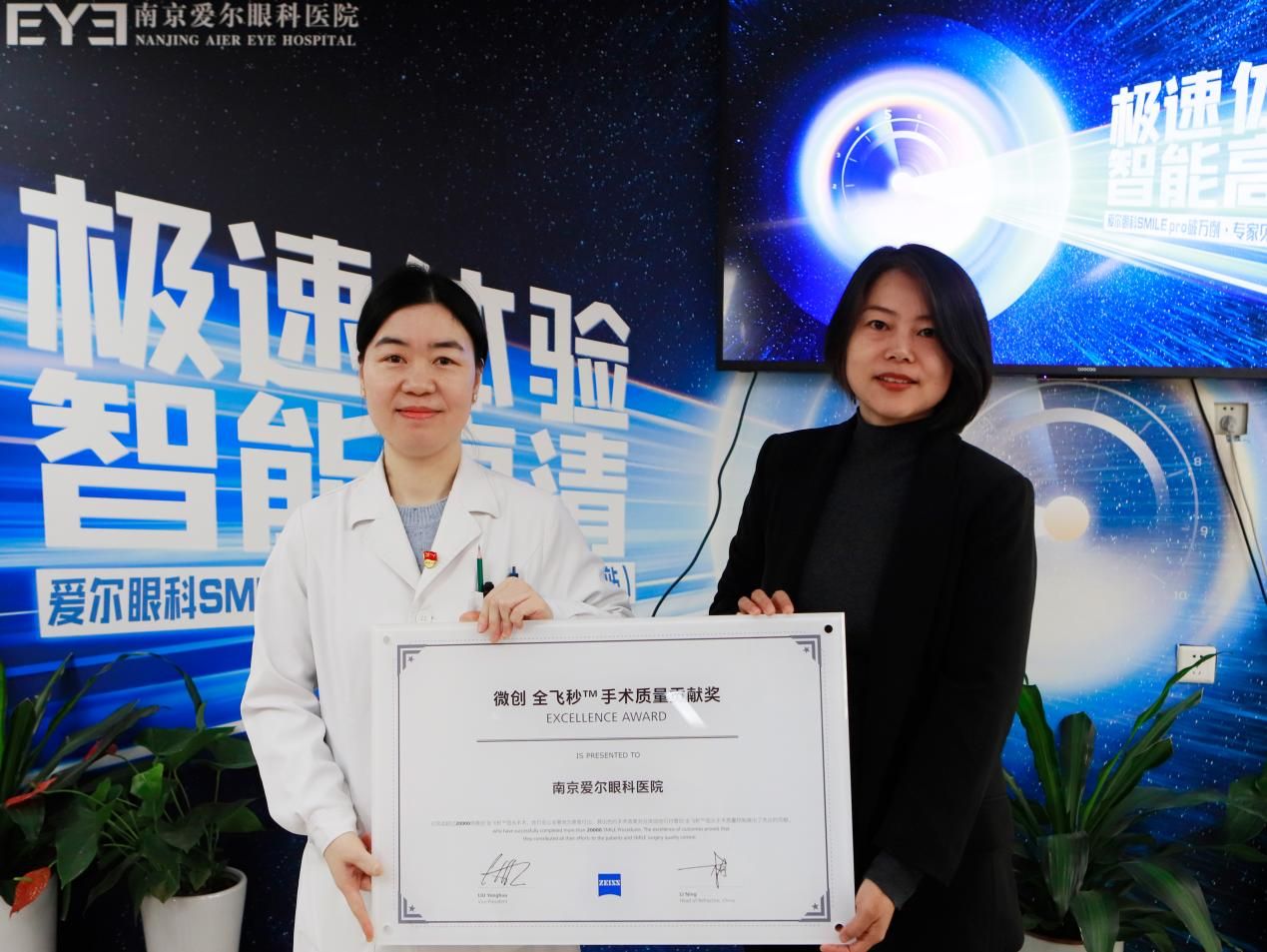1月27日上午,卡爾蔡司公司在南京愛爾眼科醫院舉辦的“極速體驗 智能高清——愛爾眼科SMILE pro破萬例·專家見面會”上,正式授予愛爾眼科醫院集團“SMILE pro手術量破萬例高質量發展貢獻獎”,同時授予南京愛爾眼科醫院“全飛秒破2萬例手術質量貢獻獎”。