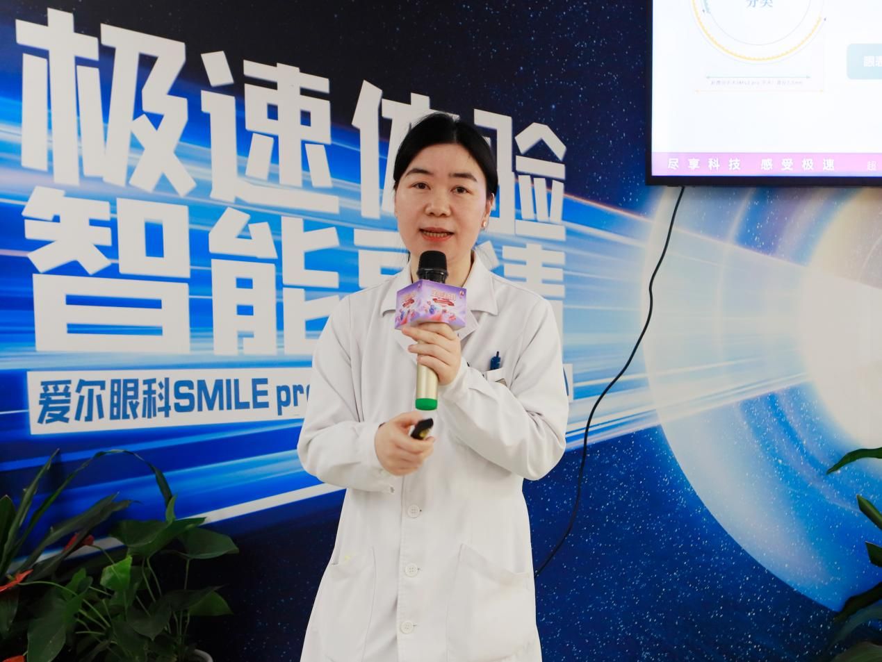 本次見面會最具震撼力的環節,是一場 SMILE pro手術的現場實時直播。在南京愛爾眼科醫院的手術室內,屈光手術科主任熊娟親自操刀;會議現場的大屏幕上,高清畫面實時傳輸著手術的每一個精準步驟,副主任醫師瞿雯同步進行專業講解。