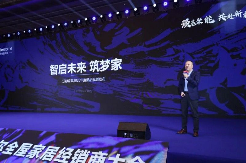 核心環節中,海爾全屋家居總經理蔡興國帶來2026年戰略規劃分享,從用戶需求出發,詳解品牌在智慧收納系統、前沿技術、環保基材應用等方面的布局,以及聯動產業鏈資源構建協同生態的發展思路;深入解讀2026年戰略部署,針對行業變局明確落地路徑,為經銷商夯實發展根基提供清晰指引。
