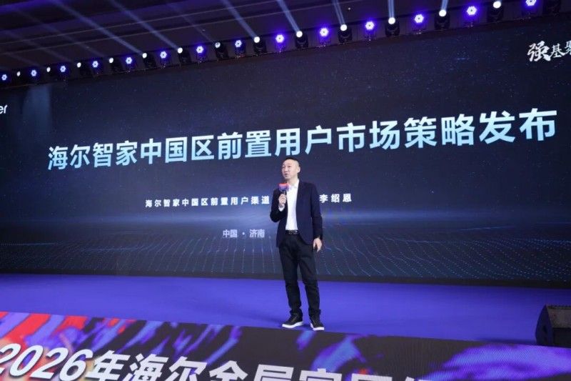 海爾智家中國區前置用戶渠道總經理李紹恩隨后分享海爾智家中國區前置用戶市場策略,復盤2025年“人單合一”與TC 轉型成果,詳解2026年“從 1+N+X” 物聯網范式的深化應用,圍繞前置用戶挖掘、需求精準匹配、服務閉環構建三大環節,提供全流程渠道支持方案。
