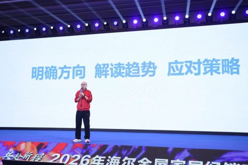 海爾全屋家居市場總經理張波登臺,作2025年度工作回顧與2026年度核心政策發布,全面復盤2025年市場業績、產品創新、渠道拓展等方面的成果,分析行業趨勢與市場機遇,發布2026年營銷支持、招商扶持、培訓賦能等核心政策,明確年初消費熱潮的營銷布局方向,為經銷商搶占市場先機提供清晰指引。