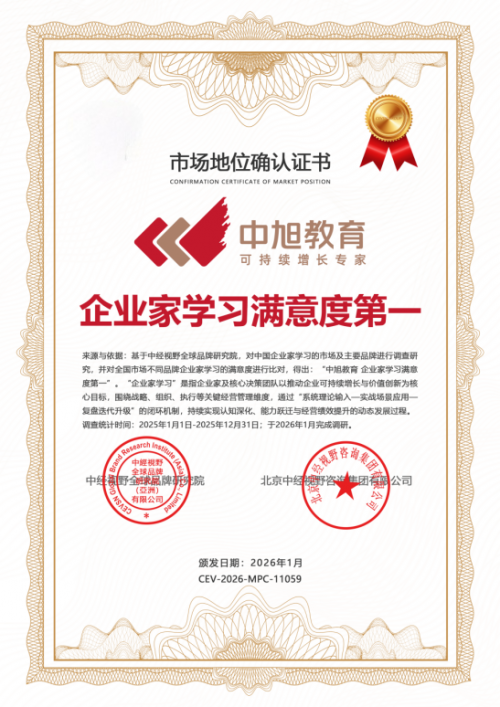因此,“滿意度第一”的結論,實質上是對中旭教育在這一完整閉環中創造客戶價值能力的最高認可。它清晰地表明,市場的評價標準已從淺層的課堂體驗,深刻回歸到能否助力企業實現 “正規化、持續化” 發展的終極考量。這份認證,正是中旭踐行使命、賦能商業未來的一個堅實注腳。
