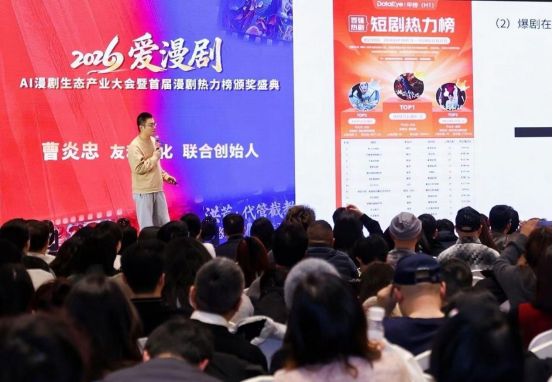 2026年1月27日,由北京劇頭科技文化有限公司主辦,DataEye劇查查、中國網絡視聽協會微短劇創意村、杭州市錢塘區視聽行業協會等作為協辦單位,由DataEye劇查查進行的獨家數據支持,“愛漫劇2026年AI漫劇生態產業大會暨首屆漫劇熱力榜頒獎盛典”在杭州市錢塘區盛泰開元名都大酒店舉行。來自全國漫劇創作、技術研發、內容運營等領域的千余名行業代表齊聚,共同見證AI漫劇從1.0向2.0時代的跨越,為數字文化產業高質量發展凝聚共識。