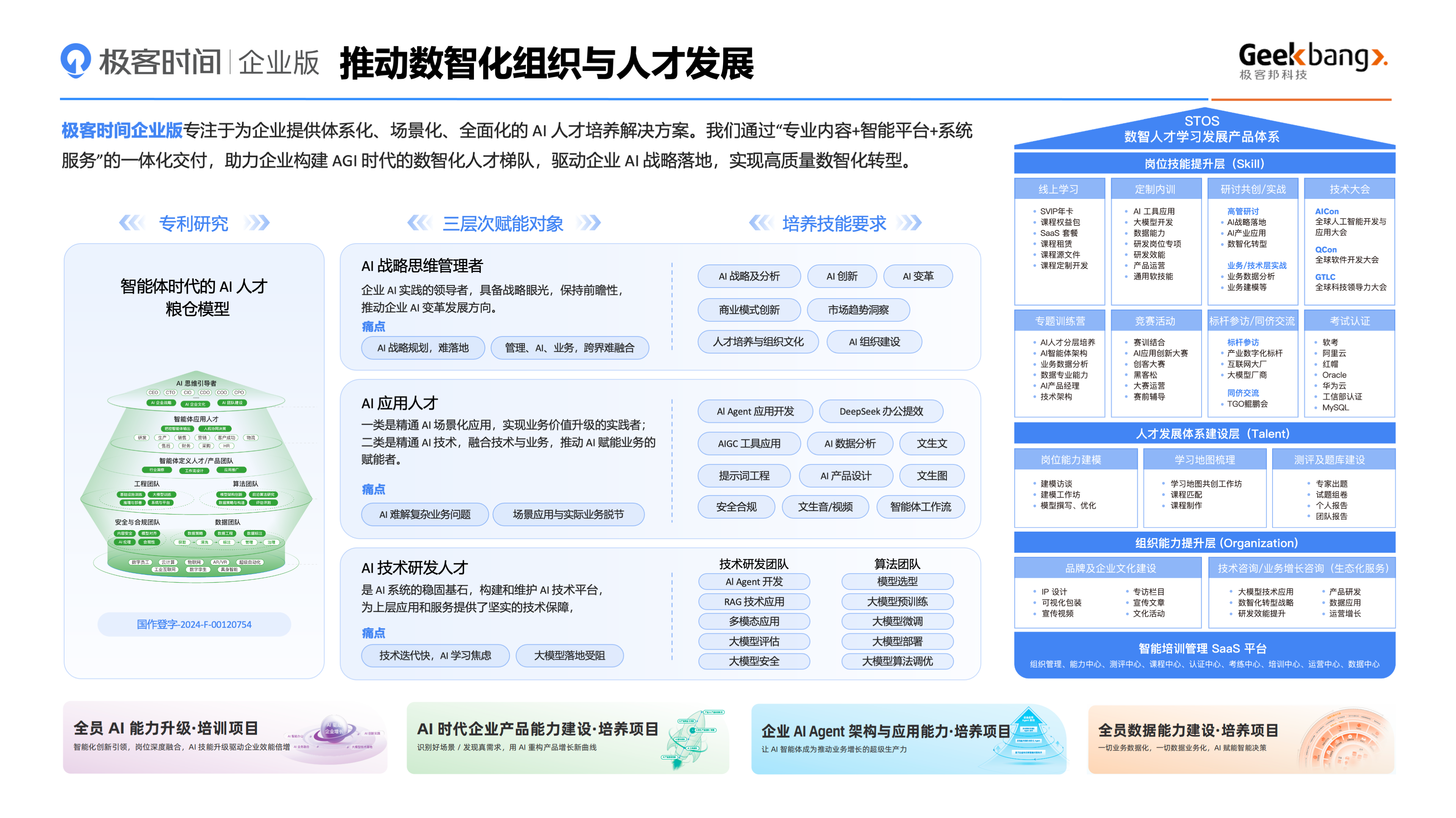 1.可落地的體系化方案:極客邦科技提供的并非孤立課程,而是從戰略規劃、技術培訓到業務場景應用、資源持續開發的全鏈路方案。這幫助企業避免“散點采購”的常見困境,實現人才發展的系統化規劃與執行。