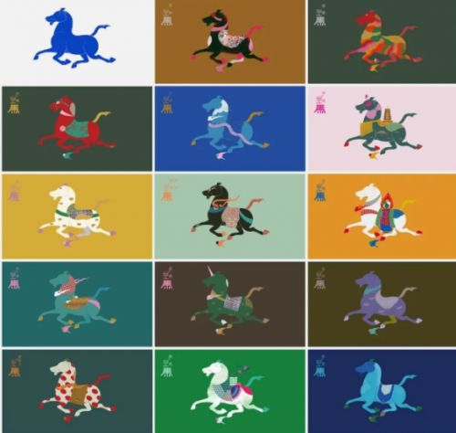 于是,他畫馬,但不止于馬。他將壁畫中“曹衣出水”的線條感,轉化為現代平面設計中的流線型構圖;將民間剪紙的“鏤空”美學,轉化為設計中的負空間運用;將皮影戲的二維輪廓,轉化為品牌視覺中的識別符號。這種轉譯不是簡單的圖案挪用,而是深層的文化語法轉換。
