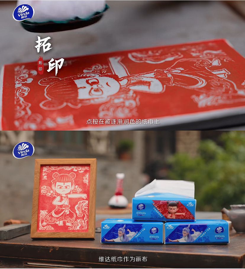 2025年5月,維達再度創新,攜手動畫IP“哪吒”,將另一項古老技藝——非遺拓印推至臺前。通過將拓印技藝與中國傳統神話結合,維達不僅讓沉寂的古老技藝煥發出新時代的活力,更借助親子互動拓印體驗,讓“韌性”的品牌理念與“堅韌不拔”的文化精神在家庭場景中悄然傳遞。