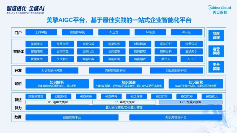 2. 三層模型協同:L0通用模型(如Excel分析)→L1垂域模型(如供應鏈預測)→L2專屬模型(如美的獨特工藝庫),適配企業個性化需求;