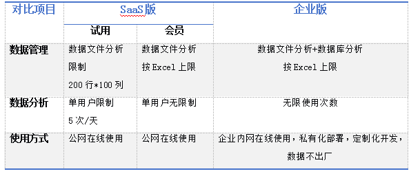 SaaS版和企業版產品對比如下: