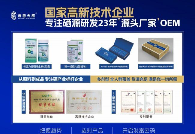 在"健康中國2030"戰略深入推進的大背景下,硒作為人體必需的微量元素,正迎來前所未有的產業機遇。河南普惠天成生物科技有限公司作為國內首家實現L-硒甲基硒代半胱氨酸(L-SeMC)原料量產的高新技術企業,憑借其在高端硒原料領域的技術創新與產業化突破,正引領中國保健品硒產業升級,從傳統無機硒向第四代有機硒轉型升級。