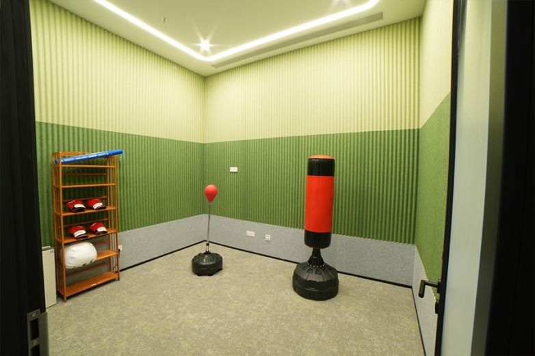 兼顧工作與身心的多維關懷,更顯企業溫度。健身房的專業器械等待著員工釋放壓力,禪意瑜伽室的輕音樂伴人舒緩身心,甚至專門設置的情緒發泄室,讓每一種情緒都能找到溫柔出口。休閑空間配備了 Sonos 專業音響系統,會根據不同區域自動切換音效。休閑區的舒緩旋律,讓整個空間的氛圍更加沉浸、舒適。