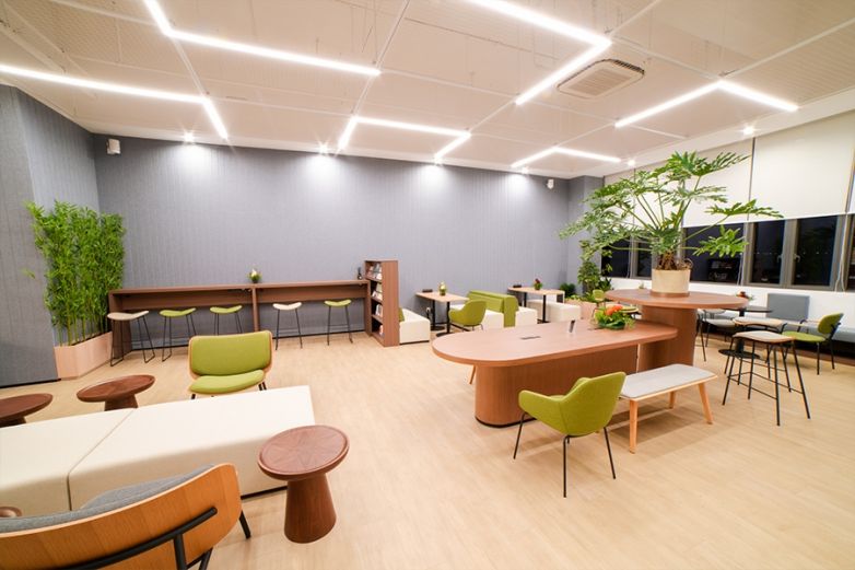 辦公區內配備大金中央空調,智能控溫且節能高效,全域暢享均勻舒適氣流。獨立隔音電話亭保障重要通話的私密性與清晰度;可調節電動升降工作臺搭配貼合脊椎曲線的 NOVAH 人體工學椅,即使長時間伏案,也能保持舒適與高效。而隱匿在辦公區的露營式休閑區,折疊椅、綠植盆栽與柔和自然光相映成趣,讓每位員工在松弛自在的氛圍中碰撞創意的火花。
