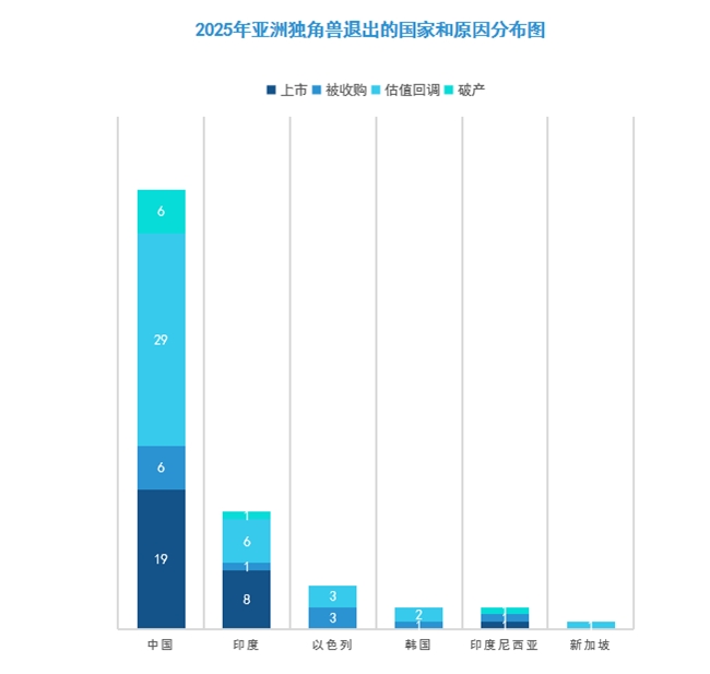 綜合來看,亞洲獨角獸退出數量是新增數量的2.3倍,直接導致了總量的凈減少,估值回調是首要原因。這背后直接反映了市場正在經歷一場深刻的估值重構和資本篩選,擠出泡沫,資源向真正優質的企業集中。