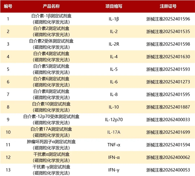 近日,中翰生物JC化學發光平臺再傳捷報,干擾素-γ(IFN-γ)、干擾素-α(IFN-α)兩項試劑成功取得浙江省藥品監督管理局頒發的第二類醫療器械注冊證。至此,該平臺13項細胞因子檢測試劑獲批上市,覆蓋IL-1β、IL-2、IL-4、IL-5、IL-6、IL-8、IL-10、IL-12p70、IL-17A、TNF-α、IFN-α、IFN-γ、IL-2R關鍵指標,構建起完善的細胞因子檢測矩陣。