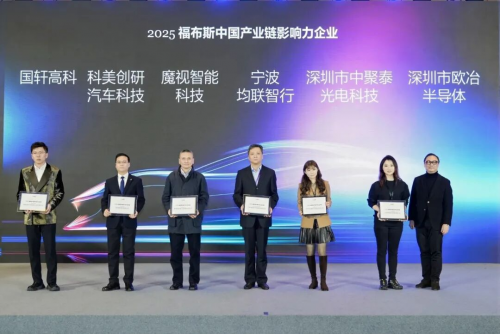 國軒高科股份有限公司、科美創研汽車科技(上海)有限公司、魔視智能科技(上海)股份有限公司、寧波均聯智行科技股份有限公司、深圳市中聚泰光電科技有限公司、深圳市歐冶半導體有限公司、奧托立夫(上海)管理有限公司,榮獲2025福布斯中國產業鏈影響力企業獎項。