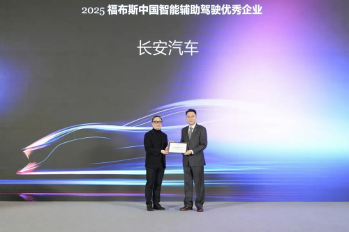 重慶長安汽車股份有限公司榮獲2025福布斯中國智能輔助駕駛優秀企業獎項。