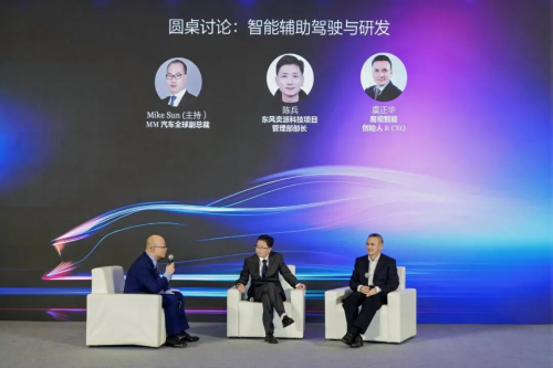 第二場圓桌的主題是“智能輔助駕駛與研發”,由Mike Sun Motors HK Limited 全球副總裁孫大森主持,東風奕派科技項目管理部部長陳兵、魔視智能創始人&CEO虞正華參與討論。