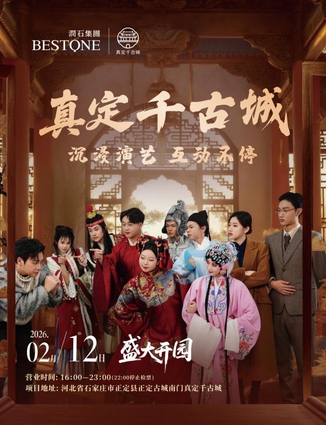夜享光影盛宴,共赴千年之約。當正定古城的歷史煙霞與現代光影藝術交匯,一場跨越時空的沉浸之旅,即將在這座國家歷史文化名城的南門之下,絢爛啟程。2026年2月12日(農歷臘月二十五),備受矚目的“真定千古城沉浸式夜游”項目將正式面向公眾開放。該項目由潤石集團傾力呈現,坐擁300畝云居湖生態畫卷,深度融合正定“燕南古郡、京師屏障”的千年文脈,旨在打造一個融歷史深度、文化互動與光影美學于一體的夜間文旅新標桿,為正定古城夜景再添雋永一筆,深入回應公眾對高品質文化體驗的追求。